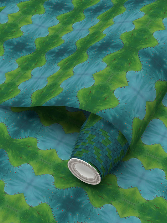 A Day of Cycling. Turqoise Green. Repeat Pattern Wallpaper.