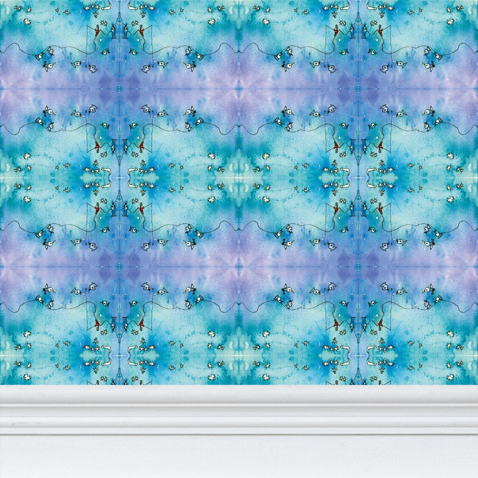 AQP416. Eindeloos Geduldig. Aquarel met pen.Serie: Verhaaltjes voor het kind in jou.Product: Repeat Pattern Wallpaper. ID: 2985. Design: Aquarel. Painted by artist designer Yolande Weerdenburg. Printed by hand by Contrado.