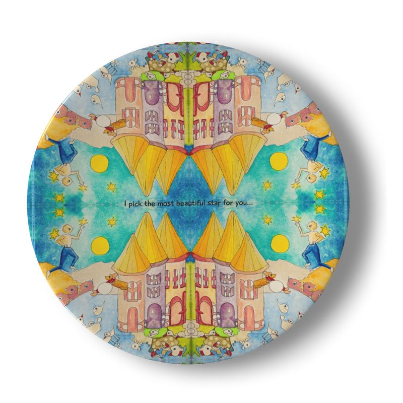 Serie: Inner Child Art. Little stoeries for the child in You. Object: Porcelain Plate. ID: 1627.Maat: 20,5 cm.Design: Oilpainting on toile by artiste designer Yolande Weerdenburg. High quality print by hand by Contrada.Packaging: In luxury printed fabric packaging.