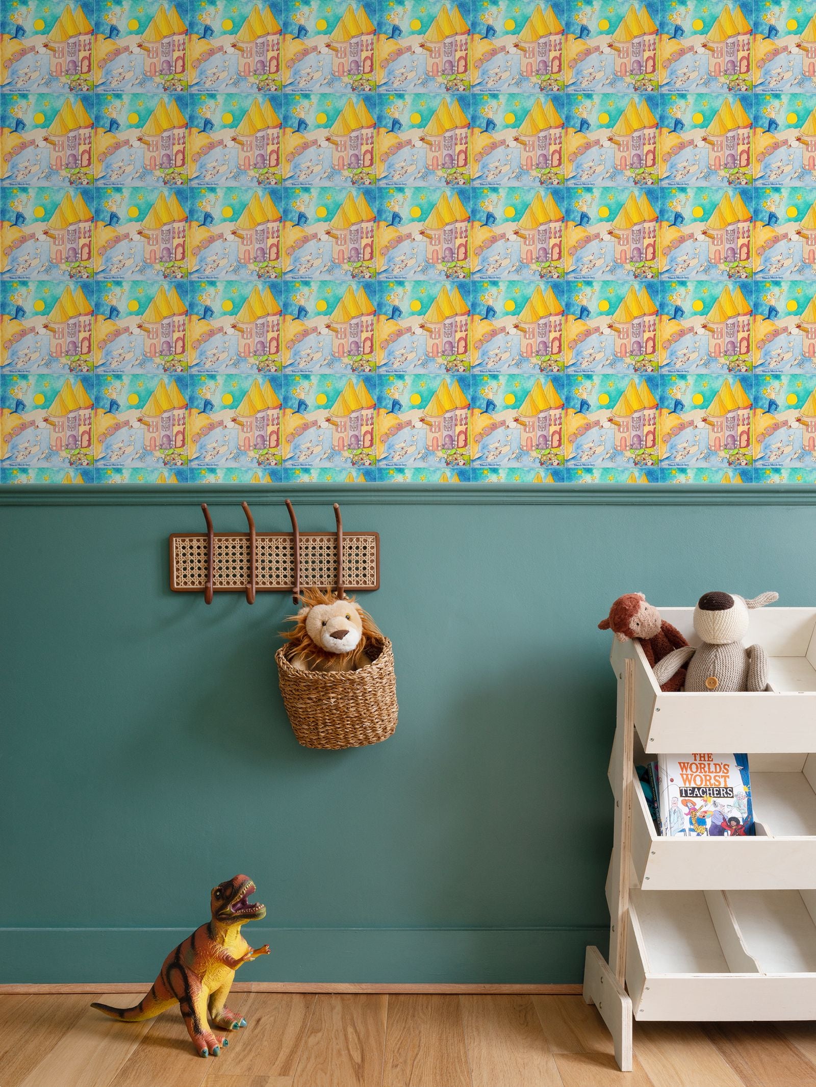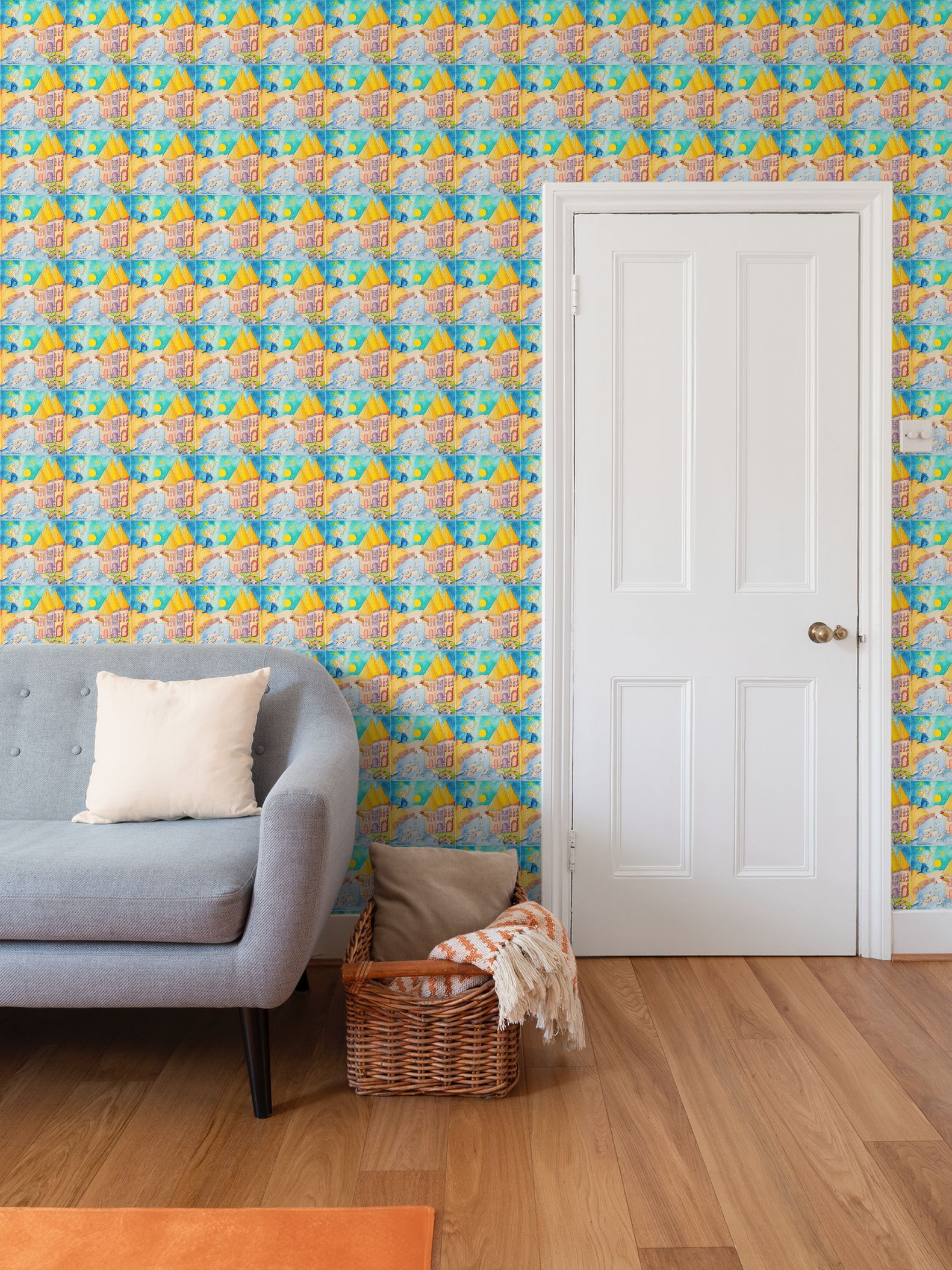OK304. Ik pluk de mooiste ster voor jou.Serie: Verhaaltjes voor het kind in jou.Object: Behang. ID: 2985.Design: Olieverf op doek geschilderd door kunstenares designer Yolande Weerdenburg.Hoogwaardig geprint met de hand door Contrado.